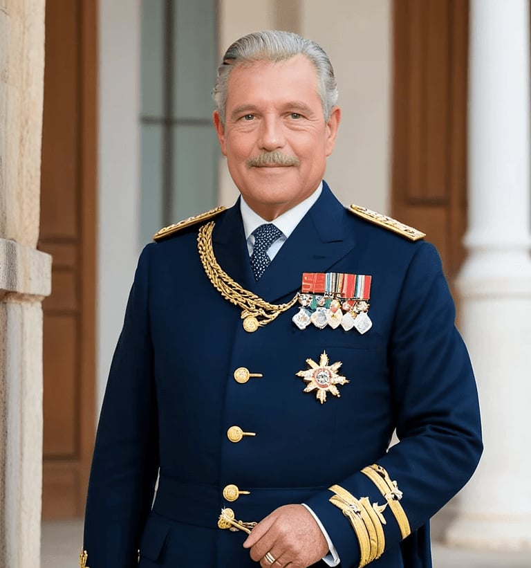 A Família Real de Konga governa com sabedoria e tradição sob o Califa Manuel II de Córdova.